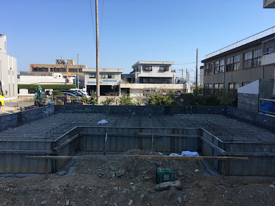 今日は、一段低いお風呂部分だけコンクリートを打ちます。